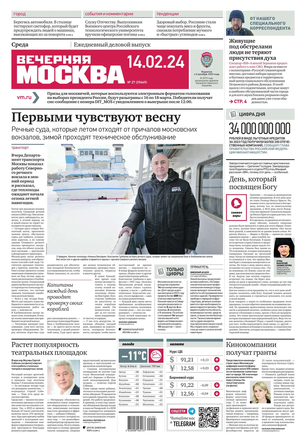 «Вечерняя Москва» — ежедневная российская вечерняя газета, старейшее из вечерних изданий в России, учрежденное в 1923 году. Выходит пять дней в неделю, кроме субботы и воскресенья. Отличается тем, что рассказывает о событиях еще не завершившегося дня. Оперативно освещает хронику и особенности жизни Москвы, охватывает все слои общества и большинство профессиональных и возрастных групп читателей.Издание представлено тремя выпусками – утренним ежедневным, вечерним (выходит три раза в неделю), еженедельным (выходит по четвергам).