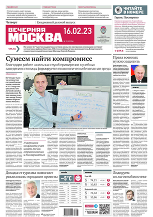 «Вечерняя Москва» — ежедневная российская вечерняя газета, старейшее из вечерних изданий в России, учрежденное в 1923 году. Выходит пять дней в неделю, кроме субботы и воскресенья. Отличается тем, что рассказывает о событиях еще не завершившегося дня. Оперативно освещает хронику и особенности жизни Москвы, охватывает все слои общества и большинство профессиональных и возрастных групп читателей.Издание представлено тремя выпусками – утренним ежедневным, вечерним (выходит три раза в неделю), еженедельным (выходит по четвергам).