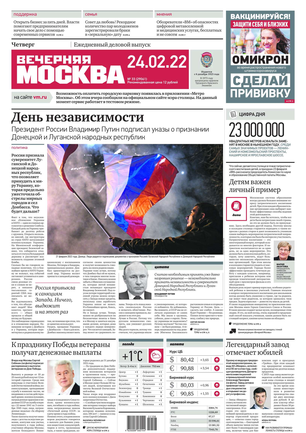 «Вечерняя Москва» — ежедневная российская вечерняя газета, старейшее из вечерних изданий в России, учрежденное в 1923 году. Выходит пять дней в неделю, кроме субботы и воскресенья. Отличается тем, что рассказывает о событиях еще не завершившегося дня. Оперативно освещает хронику и особенности жизни Москвы, охватывает все слои общества и большинство профессиональных и возрастных групп читателей.Издание представлено тремя выпусками – утренним ежедневным, вечерним (выходит три раза в неделю), еженедельным (выходит по четвергам).