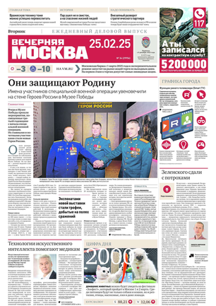 «Вечерняя Москва» — ежедневная российская вечерняя газета, старейшее из вечерних изданий в России, учрежденное в 1923 году. Выходит пять дней в неделю, кроме субботы и воскресенья. Отличается тем, что рассказывает о событиях еще не завершившегося дня. Оперативно освещает хронику и особенности жизни Москвы, охватывает все слои общества и большинство профессиональных и возрастных групп читателей.Издание представлено тремя выпусками – утренним ежедневным, вечерним (выходит три раза в неделю), еженедельным (выходит по четвергам).