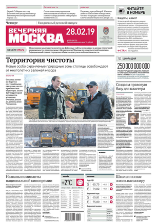 «Вечерняя Москва» — ежедневная российская вечерняя газета, старейшее из вечерних изданий в России, учрежденное в 1923 году. Выходит пять дней в неделю, кроме субботы и воскресенья. Отличается тем, что рассказывает о событиях еще не завершившегося дня. Оперативно освещает хронику и особенности жизни Москвы, охватывает все слои общества и большинство профессиональных и возрастных групп читателей.Издание представлено тремя выпусками – утренним ежедневным, вечерним (выходит три раза в неделю), еженедельным (выходит по четвергам).