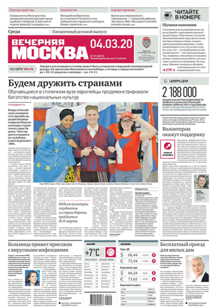 «Вечерняя Москва» — ежедневная российская вечерняя газета, старейшее из вечерних изданий в России, учрежденное в 1923 году. Выходит пять дней в неделю, кроме субботы и воскресенья. Отличается тем, что рассказывает о событиях еще не завершившегося дня. Оперативно освещает хронику и особенности жизни Москвы, охватывает все слои общества и большинство профессиональных и возрастных групп читателей.Издание представлено тремя выпусками – утренним ежедневным, вечерним (выходит три раза в неделю), еженедельным (выходит по четвергам).