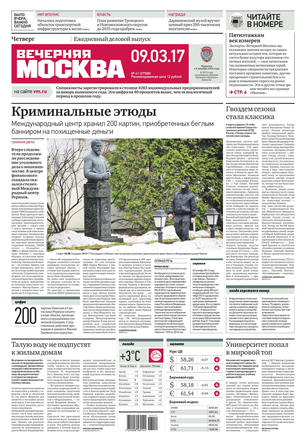 «Вечерняя Москва» — ежедневная российская вечерняя газета, старейшее из вечерних изданий в России, учрежденное в 1923 году. Выходит пять дней в неделю, кроме субботы и воскресенья. Отличается тем, что рассказывает о событиях еще не завершившегося дня. Оперативно освещает хронику и особенности жизни Москвы, охватывает все слои общества и большинство профессиональных и возрастных групп читателей.Издание представлено тремя выпусками – утренним ежедневным, вечерним (выходит три раза в неделю), еженедельным (выходит по четвергам).