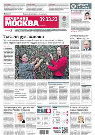 Вечером на страницах «Вечерки» появляются эксклюзивные интервью ньюсмейкеров культуры и шоу-бизнеса, репортажи журналистов по вечерней Москве, афиша нашего города. Один раз в неделю выходит специальный студенческий вечерний номер.