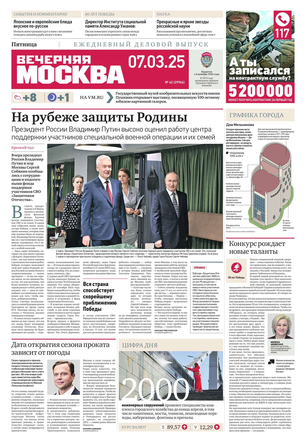 «Вечерняя Москва» — ежедневная российская вечерняя газета, старейшее из вечерних изданий в России, учрежденное в 1923 году. Выходит пять дней в неделю, кроме субботы и воскресенья. Отличается тем, что рассказывает о событиях еще не завершившегося дня. Оперативно освещает хронику и особенности жизни Москвы, охватывает все слои общества и большинство профессиональных и возрастных групп читателей.Издание представлено тремя выпусками – утренним ежедневным, вечерним (выходит три раза в неделю), еженедельным (выходит по четвергам).