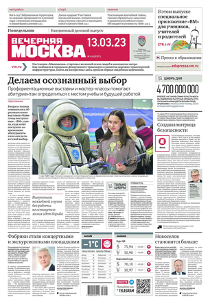 Вечером на страницах «Вечерки» появляются эксклюзивные интервью ньюсмейкеров культуры и шоу-бизнеса, репортажи журналистов по вечерней Москве, афиша нашего города. Один раз в неделю выходит специальный студенческий вечерний номер.