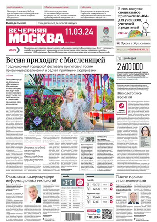 «Вечерняя Москва» — ежедневная российская вечерняя газета, старейшее из вечерних изданий в России, учрежденное в 1923 году. Выходит пять дней в неделю, кроме субботы и воскресенья. Отличается тем, что рассказывает о событиях еще не завершившегося дня. Оперативно освещает хронику и особенности жизни Москвы, охватывает все слои общества и большинство профессиональных и возрастных групп читателей.Издание представлено тремя выпусками – утренним ежедневным, вечерним (выходит три раза в неделю), еженедельным (выходит по четвергам).