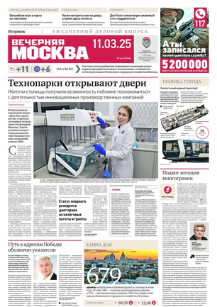 «Вечерняя Москва» — ежедневная российская вечерняя газета, старейшее из вечерних изданий в России, учрежденное в 1923 году. Выходит пять дней в неделю, кроме субботы и воскресенья. Отличается тем, что рассказывает о событиях еще не завершившегося дня. Оперативно освещает хронику и особенности жизни Москвы, охватывает все слои общества и большинство профессиональных и возрастных групп читателей.Издание представлено тремя выпусками – утренним ежедневным, вечерним (выходит три раза в неделю), еженедельным (выходит по четвергам).
