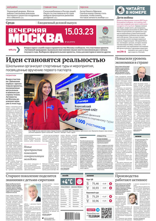 «Вечерняя Москва» — ежедневная российская вечерняя газета, старейшее из вечерних изданий в России, учрежденное в 1923 году. Выходит пять дней в неделю, кроме субботы и воскресенья. Отличается тем, что рассказывает о событиях еще не завершившегося дня. Оперативно освещает хронику и особенности жизни Москвы, охватывает все слои общества и большинство профессиональных и возрастных групп читателей.Издание представлено тремя выпусками – утренним ежедневным, вечерним (выходит три раза в неделю), еженедельным (выходит по четвергам).
