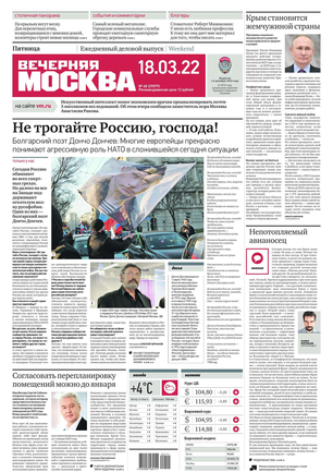 «Вечерняя Москва» — ежедневная российская вечерняя газета, старейшее из вечерних изданий в России, учрежденное в 1923 году. Выходит пять дней в неделю, кроме субботы и воскресенья. Отличается тем, что рассказывает о событиях еще не завершившегося дня. Оперативно освещает хронику и особенности жизни Москвы, охватывает все слои общества и большинство профессиональных и возрастных групп читателей.Издание представлено тремя выпусками – утренним ежедневным, вечерним (выходит три раза в неделю), еженедельным (выходит по четвергам).