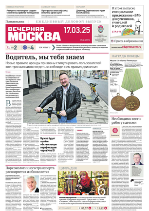 «Вечерняя Москва» — ежедневная российская вечерняя газета, старейшее из вечерних изданий в России, учрежденное в 1923 году. Выходит пять дней в неделю, кроме субботы и воскресенья. Отличается тем, что рассказывает о событиях еще не завершившегося дня. Оперативно освещает хронику и особенности жизни Москвы, охватывает все слои общества и большинство профессиональных и возрастных групп читателей.Издание представлено тремя выпусками – утренним ежедневным, вечерним (выходит три раза в неделю), еженедельным (выходит по четвергам).