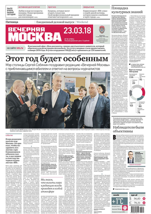 «Вечерняя Москва» — ежедневная российская вечерняя газета, старейшее из вечерних изданий в России, учрежденное в 1923 году. Выходит пять дней в неделю, кроме субботы и воскресенья. Отличается тем, что рассказывает о событиях еще не завершившегося дня. Оперативно освещает хронику и особенности жизни Москвы, охватывает все слои общества и большинство профессиональных и возрастных групп читателей.Издание представлено тремя выпусками – утренним ежедневным, вечерним (выходит три раза в неделю), еженедельным (выходит по четвергам).