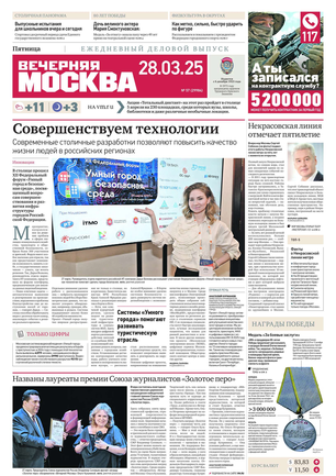 «Вечерняя Москва» — ежедневная российская вечерняя газета, старейшее из вечерних изданий в России, учрежденное в 1923 году. Выходит пять дней в неделю, кроме субботы и воскресенья. Отличается тем, что рассказывает о событиях еще не завершившегося дня. Оперативно освещает хронику и особенности жизни Москвы, охватывает все слои общества и большинство профессиональных и возрастных групп читателей.Издание представлено тремя выпусками – утренним ежедневным, вечерним (выходит три раза в неделю), еженедельным (выходит по четвергам).