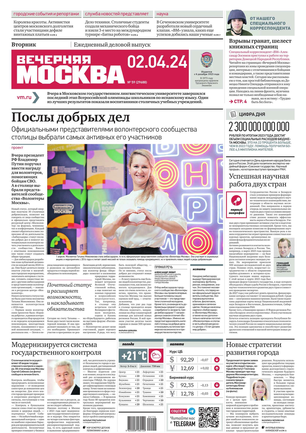 Вечером на страницах «Вечерки» появляются эксклюзивные интервью ньюсмейкеров культуры и шоу-бизнеса, репортажи журналистов по вечерней Москве, афиша нашего города. Один раз в неделю выходит специальный студенческий вечерний номер.
