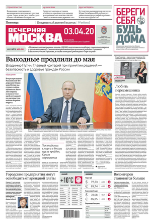 «Вечерняя Москва» — ежедневная российская вечерняя газета, старейшее из вечерних изданий в России, учрежденное в 1923 году. Выходит пять дней в неделю, кроме субботы и воскресенья. Отличается тем, что рассказывает о событиях еще не завершившегося дня. Оперативно освещает хронику и особенности жизни Москвы, охватывает все слои общества и большинство профессиональных и возрастных групп читателей.Издание представлено тремя выпусками – утренним ежедневным, вечерним (выходит три раза в неделю), еженедельным (выходит по четвергам).