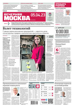 «Вечерняя Москва» — ежедневная российская вечерняя газета, старейшее из вечерних изданий в России, учрежденное в 1923 году. Выходит пять дней в неделю, кроме субботы и воскресенья. Отличается тем, что рассказывает о событиях еще не завершившегося дня. Оперативно освещает хронику и особенности жизни Москвы, охватывает все слои общества и большинство профессиональных и возрастных групп читателей.Издание представлено тремя выпусками – утренним ежедневным, вечерним (выходит три раза в неделю), еженедельным (выходит по четвергам).