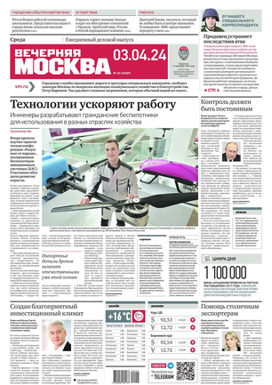 «Вечерняя Москва» — ежедневная российская вечерняя газета, старейшее из вечерних изданий в России, учрежденное в 1923 году. Выходит пять дней в неделю, кроме субботы и воскресенья. Отличается тем, что рассказывает о событиях еще не завершившегося дня. Оперативно освещает хронику и особенности жизни Москвы, охватывает все слои общества и большинство профессиональных и возрастных групп читателей.Издание представлено тремя выпусками – утренним ежедневным, вечерним (выходит три раза в неделю), еженедельным (выходит по четвергам).