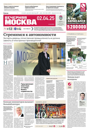 «Вечерняя Москва» — ежедневная российская вечерняя газета, старейшее из вечерних изданий в России, учрежденное в 1923 году. Выходит пять дней в неделю, кроме субботы и воскресенья. Отличается тем, что рассказывает о событиях еще не завершившегося дня. Оперативно освещает хронику и особенности жизни Москвы, охватывает все слои общества и большинство профессиональных и возрастных групп читателей.Издание представлено тремя выпусками – утренним ежедневным, вечерним (выходит три раза в неделю), еженедельным (выходит по четвергам).