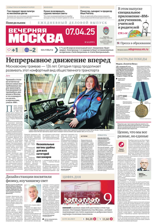 «Вечерняя Москва» — ежедневная российская вечерняя газета, старейшее из вечерних изданий в России, учрежденное в 1923 году. Выходит пять дней в неделю, кроме субботы и воскресенья. Отличается тем, что рассказывает о событиях еще не завершившегося дня. Оперативно освещает хронику и особенности жизни Москвы, охватывает все слои общества и большинство профессиональных и возрастных групп читателей.Издание представлено тремя выпусками – утренним ежедневным, вечерним (выходит три раза в неделю), еженедельным (выходит по четвергам).