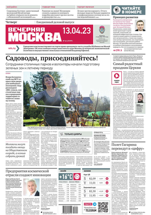 «Вечерняя Москва» — ежедневная российская вечерняя газета, старейшее из вечерних изданий в России, учрежденное в 1923 году. Выходит пять дней в неделю, кроме субботы и воскресенья. Отличается тем, что рассказывает о событиях еще не завершившегося дня. Оперативно освещает хронику и особенности жизни Москвы, охватывает все слои общества и большинство профессиональных и возрастных групп читателей.Издание представлено тремя выпусками – утренним ежедневным, вечерним (выходит три раза в неделю), еженедельным (выходит по четвергам).
