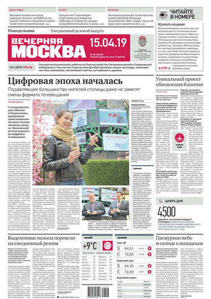 «Вечерняя Москва» — ежедневная российская вечерняя газета, старейшее из вечерних изданий в России, учрежденное в 1923 году. Выходит пять дней в неделю, кроме субботы и воскресенья. Отличается тем, что рассказывает о событиях еще не завершившегося дня. Оперативно освещает хронику и особенности жизни Москвы, охватывает все слои общества и большинство профессиональных и возрастных групп читателей.Издание представлено тремя выпусками – утренним ежедневным, вечерним (выходит три раза в неделю), еженедельным (выходит по четвергам).