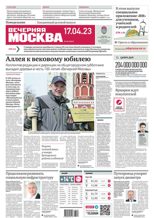 «Вечерняя Москва» — ежедневная российская вечерняя газета, старейшее из вечерних изданий в России, учрежденное в 1923 году. Выходит пять дней в неделю, кроме субботы и воскресенья. Отличается тем, что рассказывает о событиях еще не завершившегося дня. Оперативно освещает хронику и особенности жизни Москвы, охватывает все слои общества и большинство профессиональных и возрастных групп читателей.Издание представлено тремя выпусками – утренним ежедневным, вечерним (выходит три раза в неделю), еженедельным (выходит по четвергам).