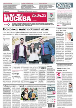 «Вечерняя Москва» — ежедневная российская вечерняя газета, старейшее из вечерних изданий в России, учрежденное в 1923 году. Выходит пять дней в неделю, кроме субботы и воскресенья. Отличается тем, что рассказывает о событиях еще не завершившегося дня. Оперативно освещает хронику и особенности жизни Москвы, охватывает все слои общества и большинство профессиональных и возрастных групп читателей.Издание представлено тремя выпусками – утренним ежедневным, вечерним (выходит три раза в неделю), еженедельным (выходит по четвергам).
