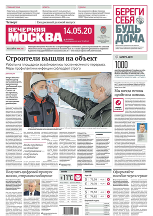«Вечерняя Москва» — ежедневная российская вечерняя газета, старейшее из вечерних изданий в России, учрежденное в 1923 году. Выходит пять дней в неделю, кроме субботы и воскресенья. Отличается тем, что рассказывает о событиях еще не завершившегося дня. Оперативно освещает хронику и особенности жизни Москвы, охватывает все слои общества и большинство профессиональных и возрастных групп читателей.Издание представлено тремя выпусками – утренним ежедневным, вечерним (выходит три раза в неделю), еженедельным (выходит по четвергам).