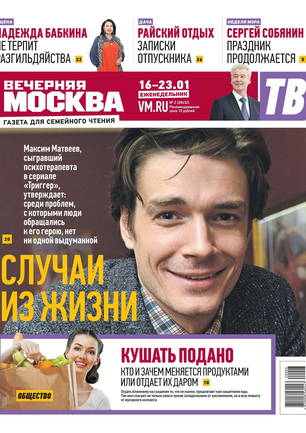 Еженедельный выпуск «Вечерней Москвы» — это значимые события недели, афиша города, новости из сферы отдыха и развлечений, телепрограмма с анонсами и комментариями, авторские колонки журналистов и авторитетные мнения экспертов, детская страничка, специальная рубрика «Золушка», интересные репортажи о необычных судьбах московских жителей, постоянные конкурсы и викторины.